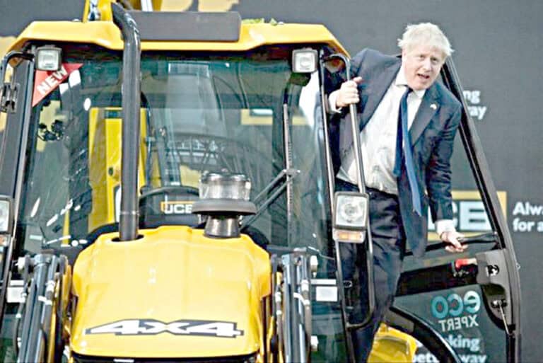 نئی دہلی میں مخالف غیرمجازقبضوں پر جاری مہم کے دوران برطانیہ کے وزیراعظم بورس جانسن کے دور وزہ ہندوستانی دورے کے موقع پر گجرات کی جے سی بی فیکٹری پہنچنے