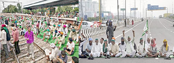 کسانوں کا سڑکوں اور ریلوے ٹریک پر احتجاج ،زرعی قوانین کی منسوخی کا مطالبہ نئی دہلی : زرعی قوانین کے خلاف تقریباً ایک سال سے مظاہرہ کر رہے کسانوں نے