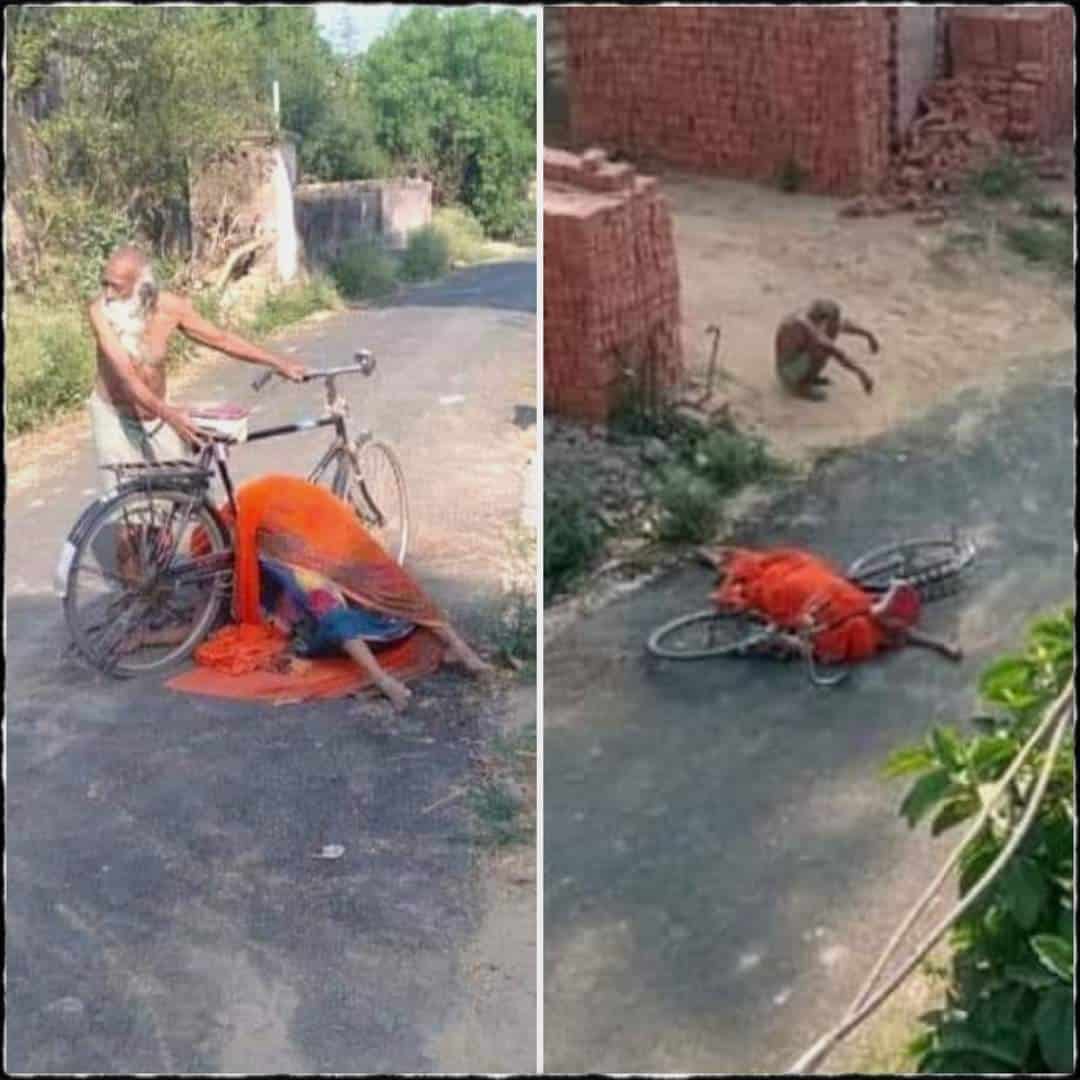 اترپردیش کے ضلع جونپور سے ایک حیران کن واقعہ سامنے آیا ہے۔ ایک تصویر میں ، سفید داڑھی والا ایک بزرگ شخص سائیکل پر عورت کی لاش لے کر جارہا