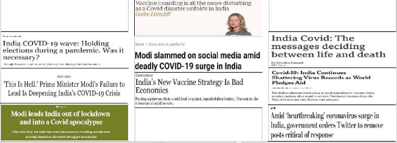 دنیا بھر کے اخبارات میں طنز کیساتھ منفی تشہیر ۔ شہ سرخیوں میں کورونا کی صورتحال کا ذکر نئی دہلی : کورونا وائرس وبا نے مودی حکومت کی قلعی کھول