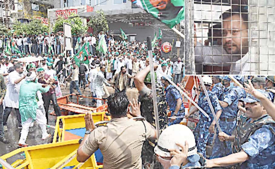 احتجاجی مارچ روکنے پر پولیس کے ساتھ پارٹی کارکنان کی جھڑپ پٹنہ ۔ بہار میں آر جے ڈی کارکنان آج سڑک پر اتر کر مہنگائی، بے روزگاری اور جرائم سمیت
