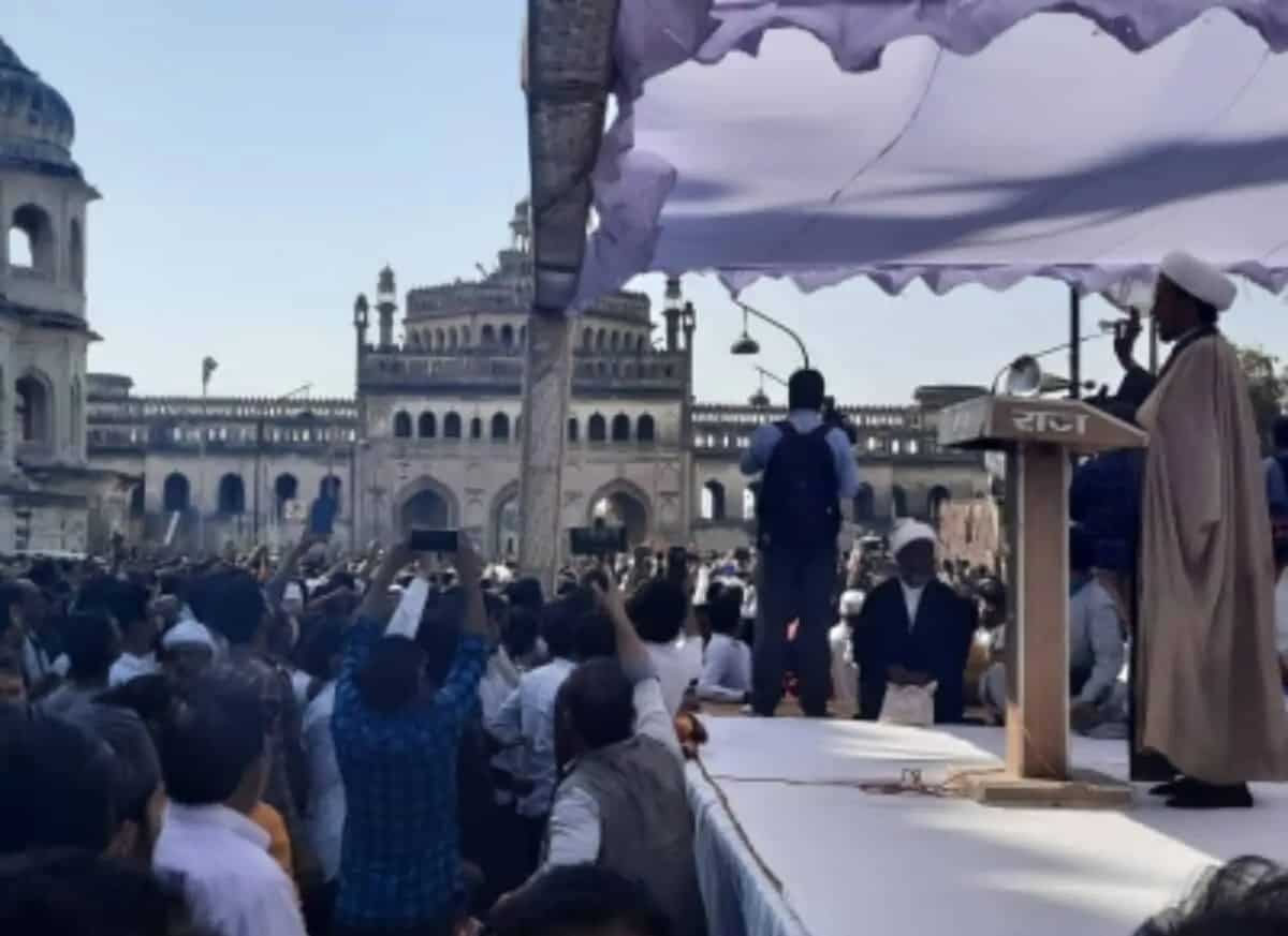 لکھنؤ: ہزاروں مسلمانوں نے شیعہ وقف بورڈ کے سابق سربراہ وسیم رضوی کے خلاف اتوار کے روز لکھنؤ کے بڑے امام باڑے میں احتجاجی مظاہرہ کیا جس نے قرآن مجید