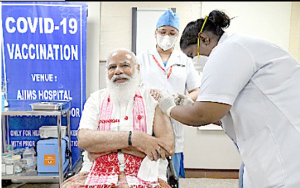 وزیر اعظم کو کورونا ویکسین کا پہلا ڈوز دیاگیا