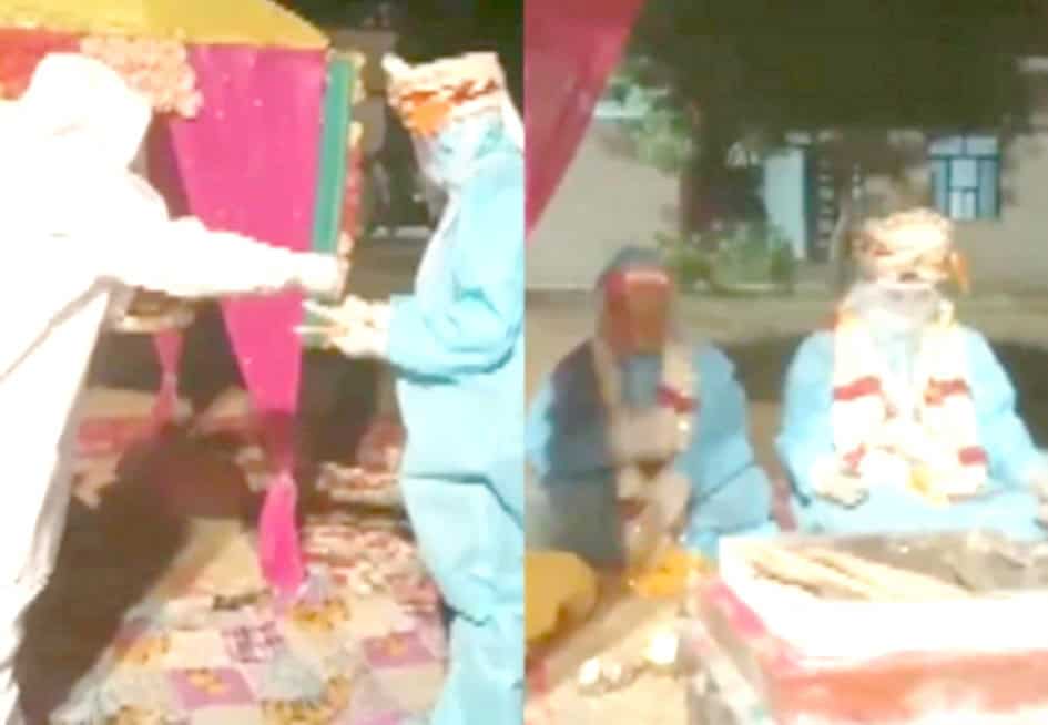 پی پی ای کٹس پہن کر جوڑے نے شادی کرلی