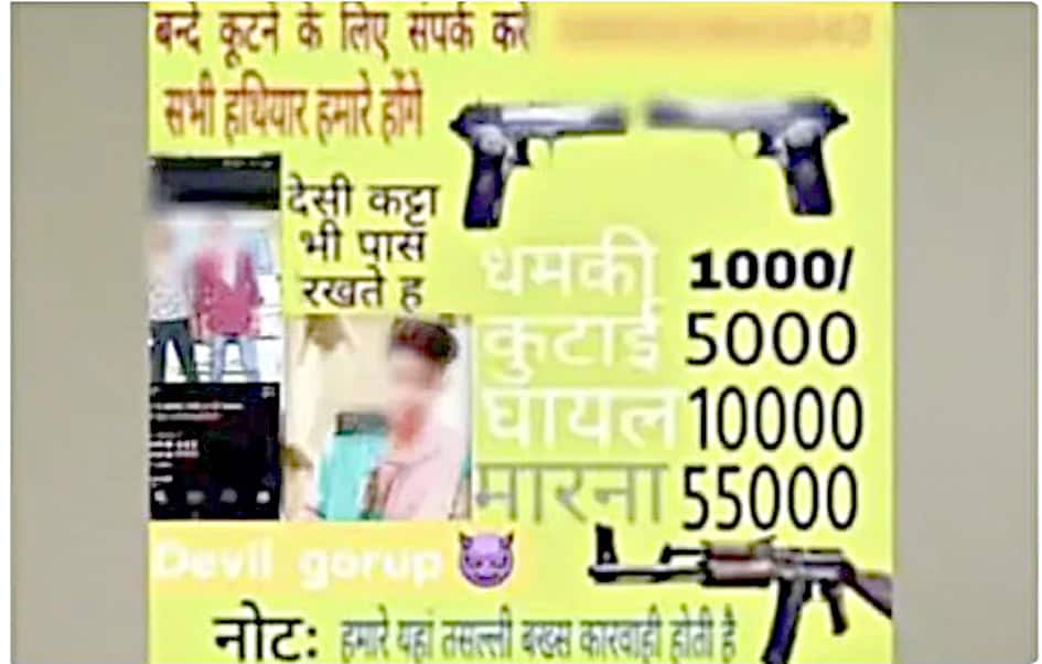 لکھنؤ: اترپردیش میں ایک گینگ کا پتہ چلایا گیا ہے جس نے غنڈوں کی خدمات فراہم کرنے کیلئے اپنی شرح کا چارٹ آویزاں کیا تھا۔ اس گینگ نے چارٹ میں