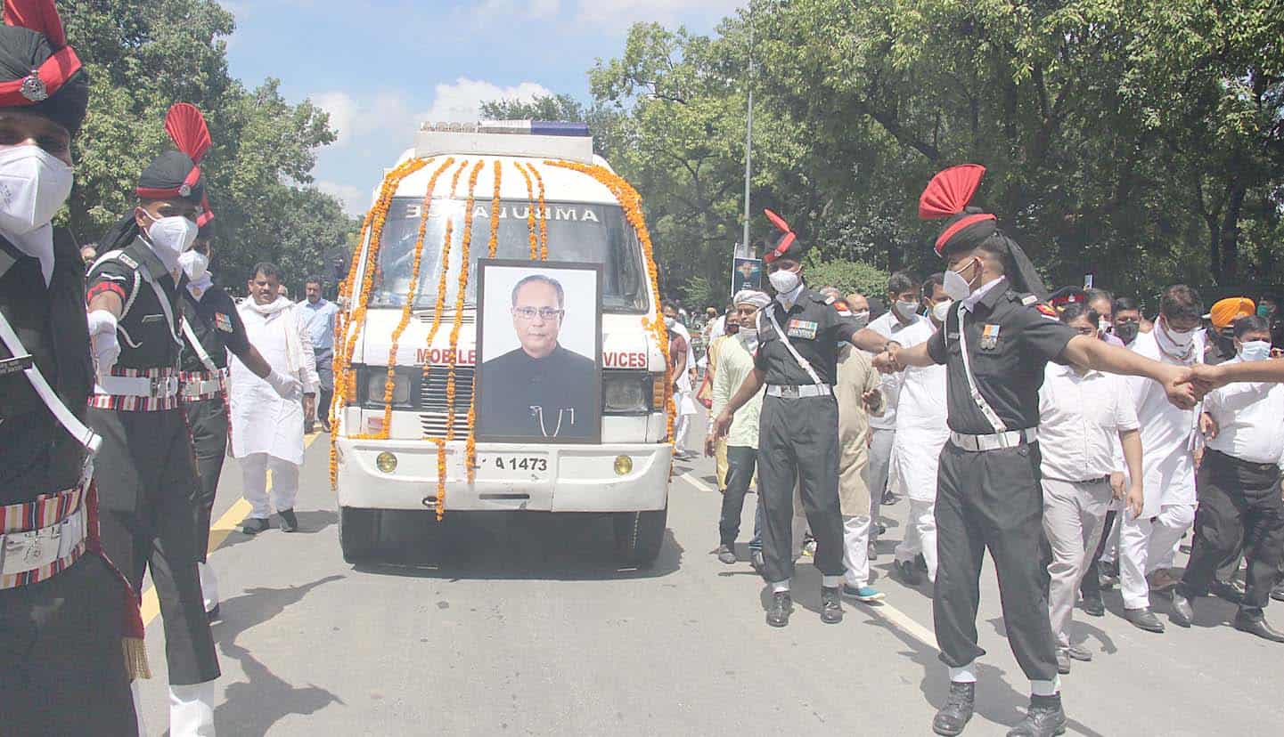 نئی دہلی: سابق صدر و بھارت رتن پرنب مکرجی کی آخری رسومات آج دہلی میں انجام دی گئیں۔ سرکاری اعزاز کے ساتھ لودھی اسٹیٹ شمشان گھاٹ پر پرنب دا کی