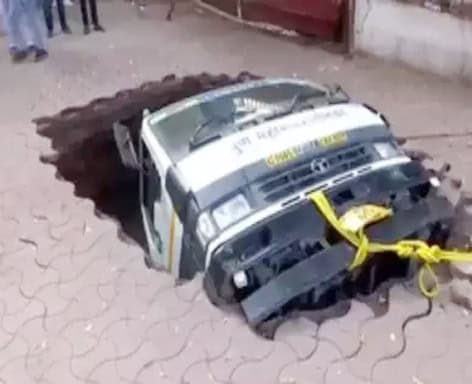 پونے : مہاراشٹرا کے پونے میں میونسپل باڈی کا پانی کا ٹینکر سڑک سے گذرتا ہوا اچانک زمین میں دھنس گیا۔ اس واقعہ کا ویڈیو سوشل میڈیا پر وائرل ہوگیا