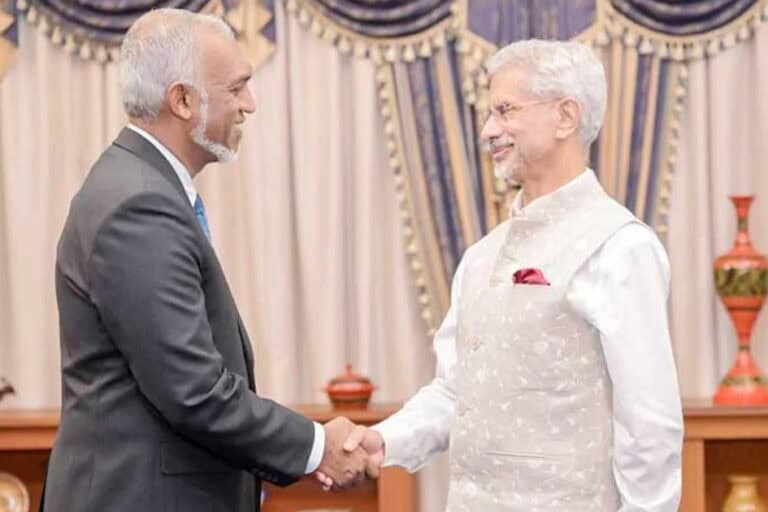دونو ں ممالک کے درمیان تعلقات کو مستحکم کرنے کا عزم نئی دہلی :وزیر خارجہ جئے شنکر نے ہفتے کو مالدیپ کے صدر معیزو سے ملاقات کی اور دونوں ممالک