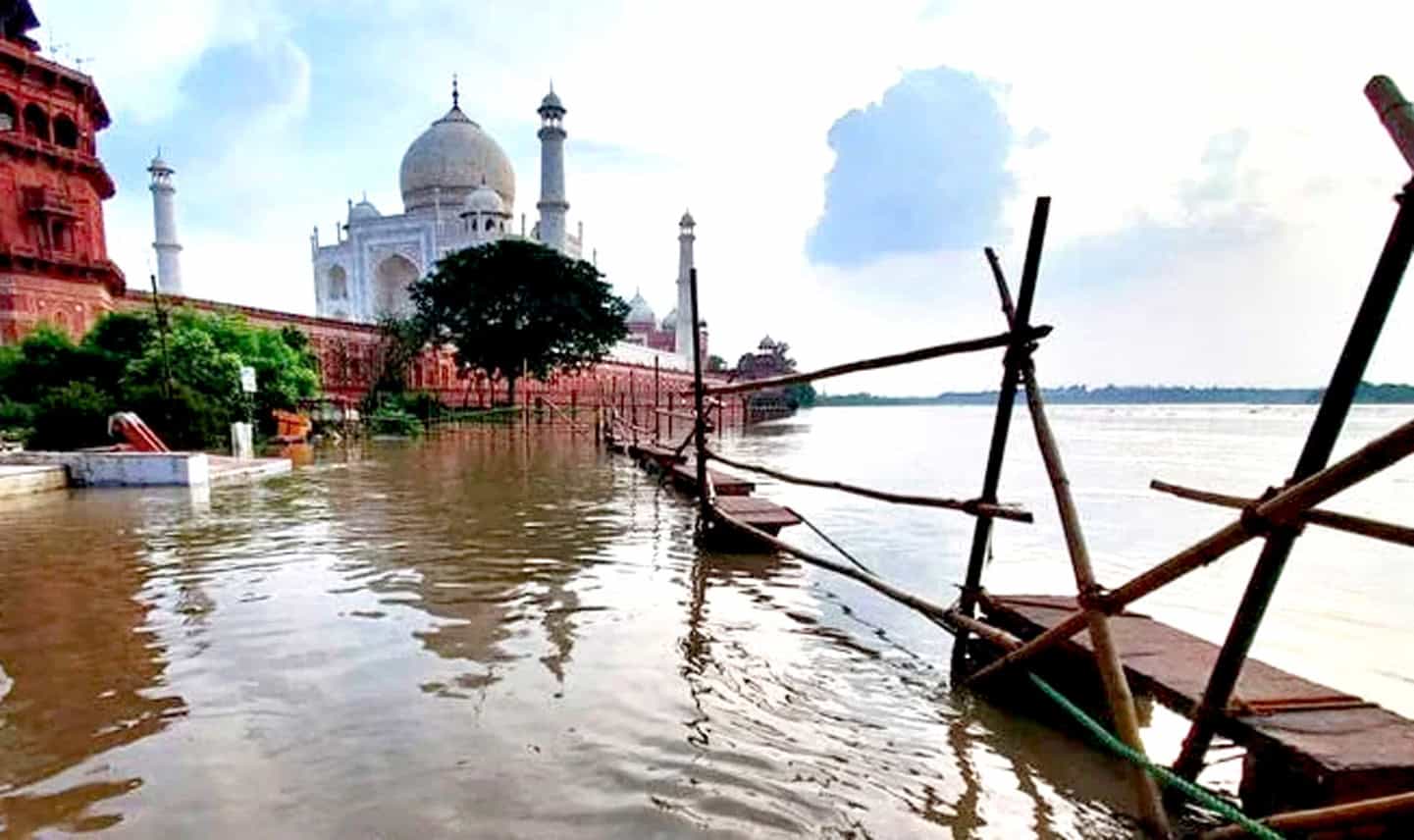 ۔ میڈیا رپورٹ کے مطابق دریائے جمنا کا پانی 45 سال میں پہلی بار تاج محل کی دیواروں تک پہنچا۔ آگرہ میں 17ویں صدی کی اس یادگار کو سیلابی پانی