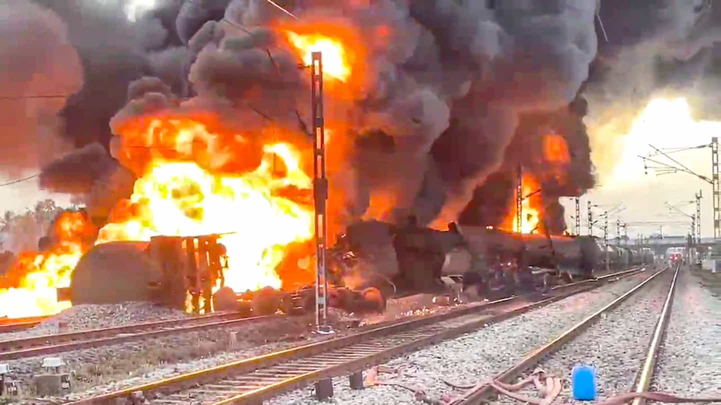 چینائی13 جولائی (یو این آئی) چینائی کے قریب خام تیل سے بھری ایک مال بردار ٹرین میں آگ لگ گئی۔آگ اتنی بھیانک تھی کہ آگ کے گھنے غبار نے چینائیسے