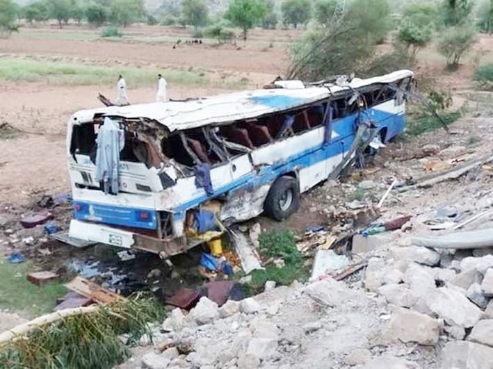 اسلام آباد: پا کستان کے جنوب مغربی صوبے بلوچستان کے ضلع شیرانی کے قریب اتوار کو شدید بارش کے دوران ایک مسافر بس پہاڑی راستے سے پھسل کر گہری کھائی
