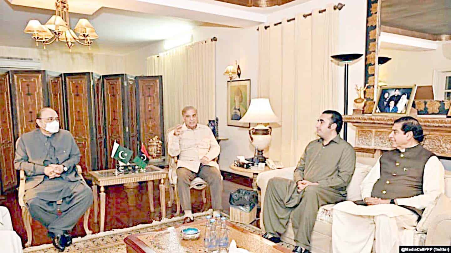 اسلام آباد: پاکستان کے وزیراعظم شہباز شریف نے اتحادیوں کے قائدین سے ملاقات کرکے ان کے ساتھ کابینہ کی تشکیل پر بات کی۔ شہباز نے پی پی پی لیڈر اور