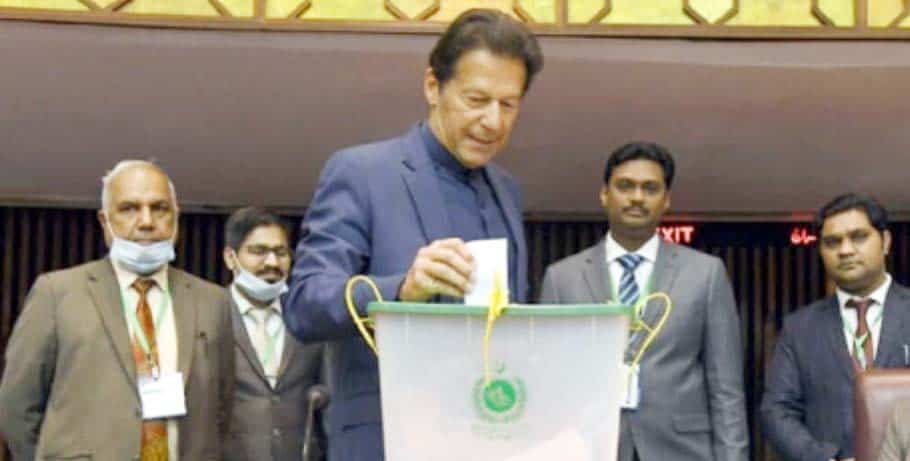 ۔342 رکنی ایوان زیریں میں پاکستان تحریک انصاف کو 178 ووٹس حاصل ہوئے اپوزیشن اتحاد پاکستان ڈیموکریٹک موومنٹ کے بائیکاٹ کے بعد عمران خان کی آسان جیت پاکستان میں غیریقینی