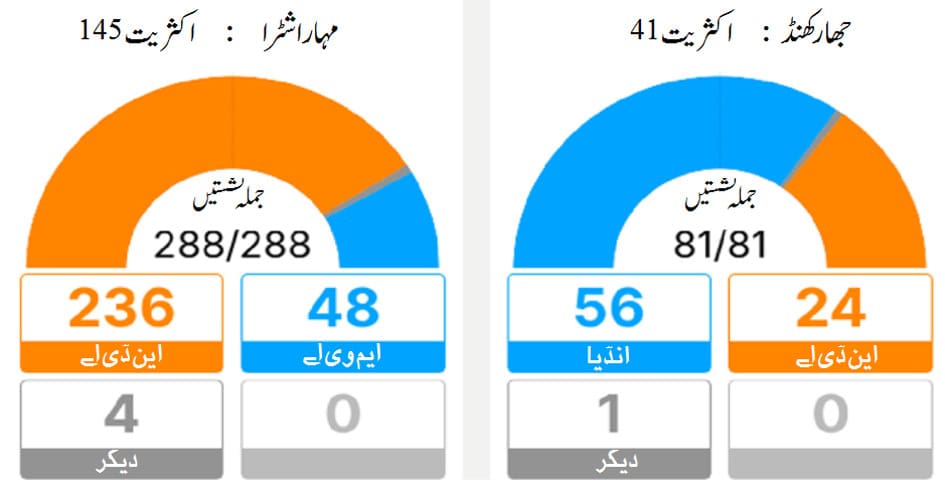 سال کا آخری انتخابی مقابلہ 1 – 1 سے ٹائی ممبئی / رانچی : ملک کی دو ریاستوں جھارکھنڈ اور مہاراشٹرا میں آج انتخابی نتائج کا اعلان کردیا گیا ہے