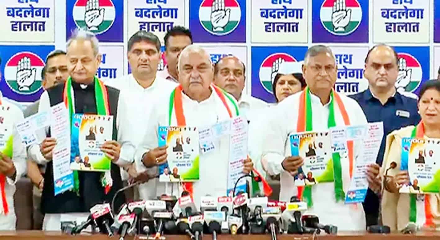 ’سات وعدے۔پکے ارادے‘ کے نام سے کانگریس کا منشور جاری‘یکم اکٹوبر کو ایک مرحلہ میں ووٹنگ چندی گڑھ:کانگریس نے ہفتہ کو چندی گڑھ میں ہریانہ اسمبلی انتخابات 2024 کیلئے اپنا