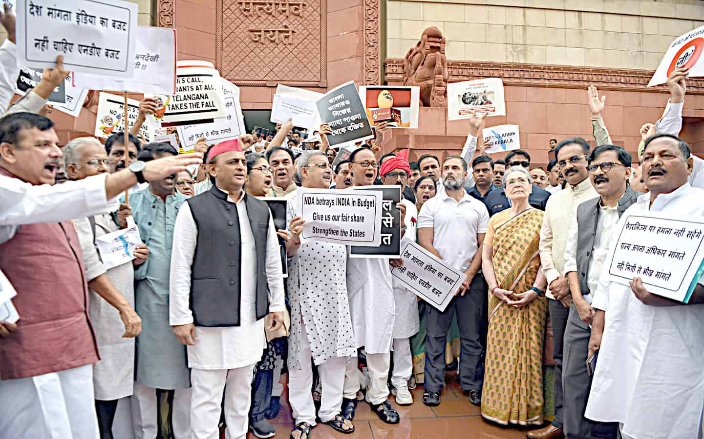 نئی دہلی: کانگریس کی قیادت میں انڈیا اتحاد کے ارکان پارلیمنٹ نے چہارشنبہ کے روز یونین بجٹ 2024-25 پر بحث کے دوران راجیہ سبھا سے علامتی واک آؤٹ کیا اور