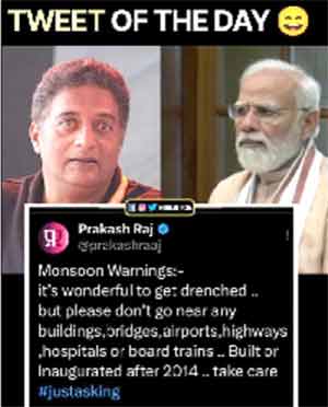 بنگلورو: نامور اداکار اور سماجی جہد کار پرکاش راج نے آج ایسا طنز بھرا ٹوئٹ کیا جو 2014 سے وزیراعظم نریندر مودی کی حکمرانی میں ہندوستان کی بدحالی کو بیان