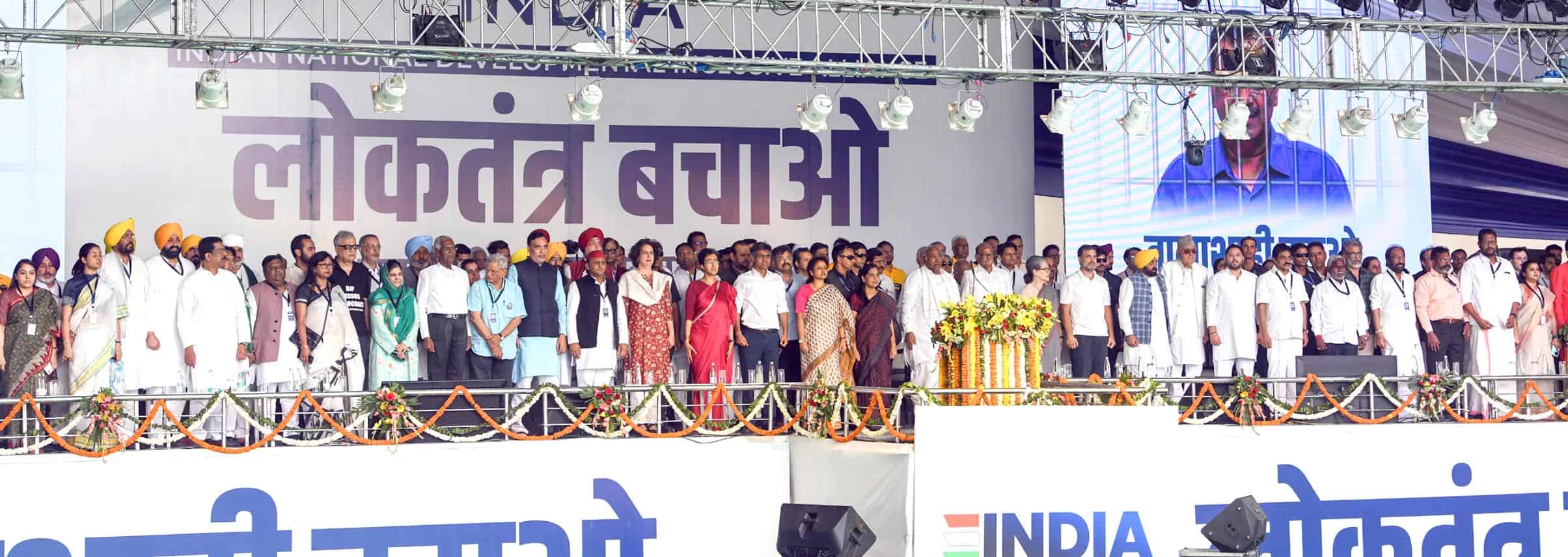 مودی آندھی کی طرح آئے ،طوفان کی طرح چلے جائیں گے:تیجسویانڈیا اتحاد کے 5نکاتی مطالبات پیش، بی جے پی کو سخت پیام:پرینکارام لیلا میدان میںجمہوریت بچاؤ ریالی سے اپوزیشن قائدین