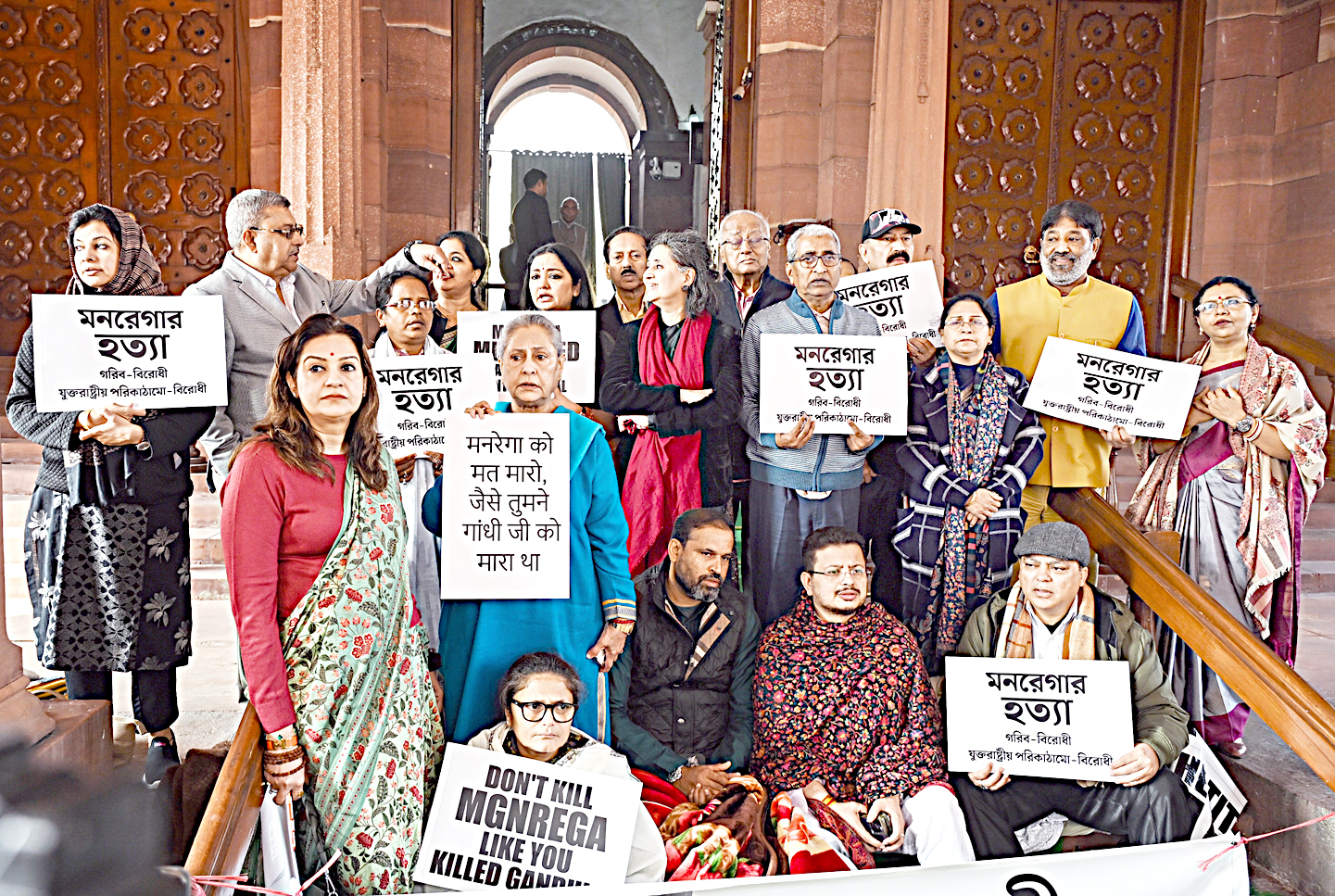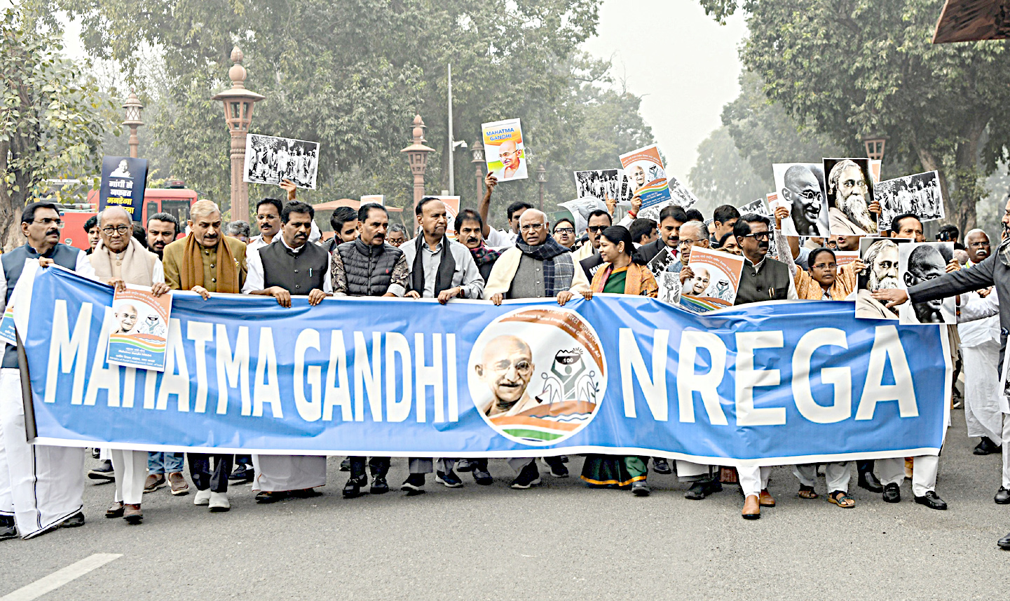 l جان بوجھ کر مہاتما گاندھی کا نام ہٹانے کا الزام‘ اپوزیشن نے بل کی کاپیاں پھاڑ کر ایوان میں اچھال دیںl بل کے خلاف سڑک سے پارلیمنٹ تک احتجاج