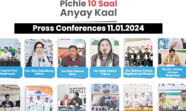 ملک کے 28شہروں میں قائدین کی پریس کانفرنسنئی دہلی :کانگریس نے آج ملک کے کئی شہروں میں پریس کانفرنس کر کے مرکز کی مودی حکومت کے 10 سال کو ’انیائے