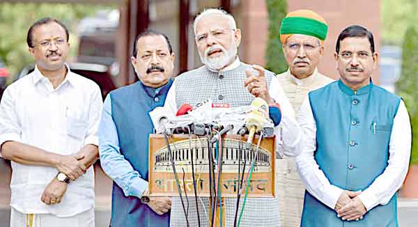 وزیراعظم مودی پیر کو پارلیمنٹ کے خصوصی سیشن کے آغاز پر میڈیا کو مخاطب کرتے ہوئے ۔