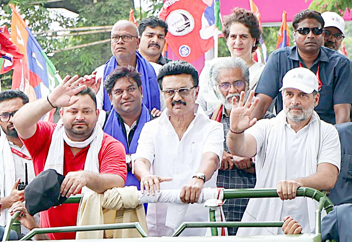 مظفرپور۔ 27 اگست (ایجنسیز) بہار میں کانگریس اور راشٹریہ جنتا دل کی ’ووٹر ادھیکار یاترا‘ بدھ کے روز دربھنگہ سے مظفرپور پہنچی اس موقع پر تمل ناڈو کے وزیر اعلیٰ