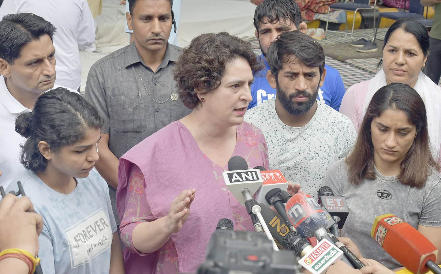 نئی دہلی، 29 اپریل : کانگریس جنرل سکریٹری پرینکا گاندھی نے آج جنتر منتر پر احتجاج کرنے والی خواتین پہلوانوں سے ملاقات کی اورانہیں انصاف دینے ریسلنگ فیڈریشن صدر برج