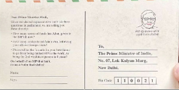 این ایس یو آئی کی پوسٹ کارڈ مہم‘ وزیر اعظم سے پوچھے 3 سوالات نئی دہلی :گوتم اڈانی کو لے کر وزیر اعظم نریندر مودی کی خاموشی پر لگاتار سوال