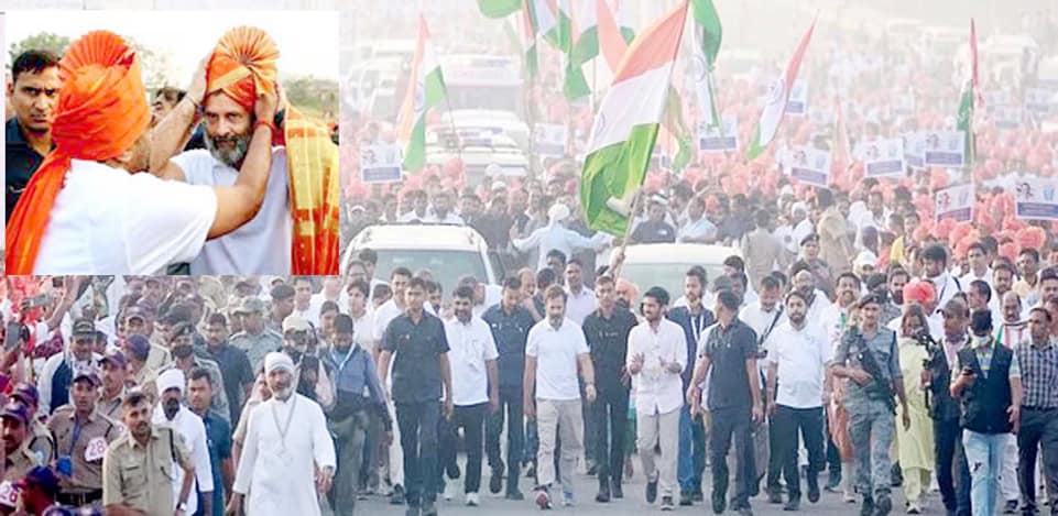 کولہاپوری پگڑیاں پہن کر ہزاروں کارکنوں کی پیدل یاترا میں شرکتہنگولی (مہاراشٹرا): کانگریس کی ’بھارت جوڑو یاترا‘ میں ہفتہ کو پارٹی کے 7 کارکنوں نے کولہا پوری میلہ کشتی میں