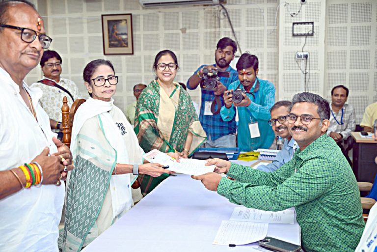 کولکاتا، 8 اپریل(یو این آئی) مغربی بنگال کی وزیر اعلیٰ ممتا بنرجی نے آج بھوانی پور اسمبلی سیٹ سے اپنا نامزدگی فارم داخل کیا۔ اس موقع پر انہوں نے ووٹر