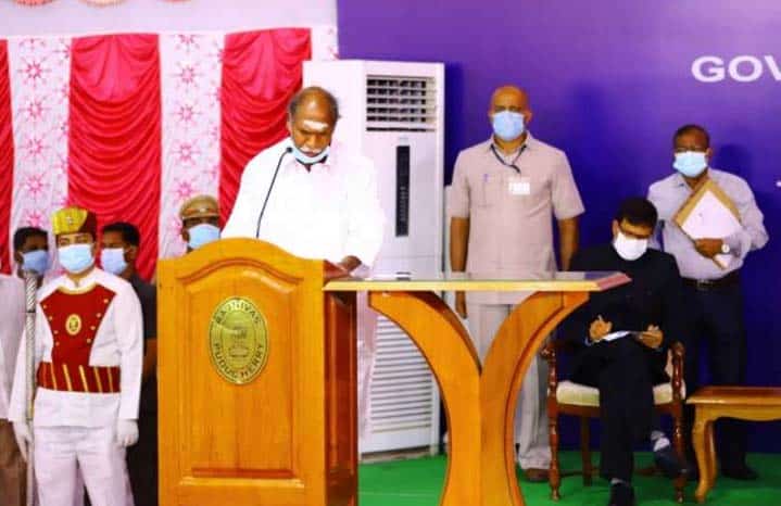 پڈوچیری : اے آئی این آر سی لیڈر این رنگاسامی کو آج یہاں چیف منسٹر پڈوچیری کی حیثیت سے راج نواس میں منعقدہ مختصر تقریب میں حلف دلایا گیا ۔
