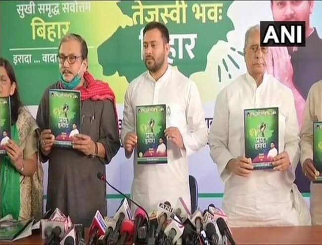 اسمارٹ گاؤں کی تشکیل ، ٹھیکیداری کا خاتمہ اور یکساں کام کی یکساں تنخواہ کا وعدہ: تیجسوی یادو پٹنہ: بہار اسمبلی انتخابا ت 2020 کے لئے راشٹریہ جنتا دل (آر