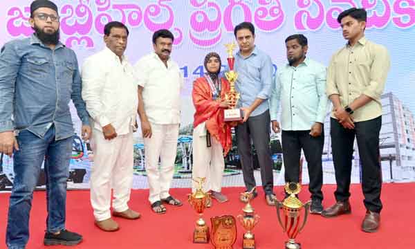 حیدرآباد، 9 نومبر( ایجنسیز) بی آر ایس ورکنگ پریذیڈنٹ کے ٹی آر نے حیدرآباد کی 12 سالہ کراٹے کھلاڑی صبا ماہین کو مبارکباد دی، جنہوں نے قومی سطح پر 18