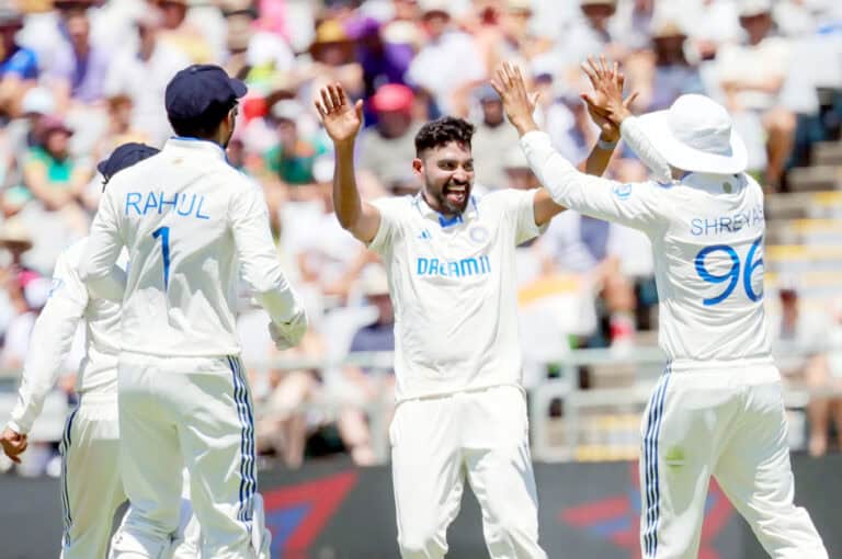 حیدرآباد ایکسپریس نے 9 اوور میں 15 رنز دیکر 6 کھلاڑیوں کو آؤٹ کیا کیپ ٹاؤن ۔ فاسٹ بولر محمد سراج نے کیریئر کی بہترین 6-15 کی اور ہندوستان نے