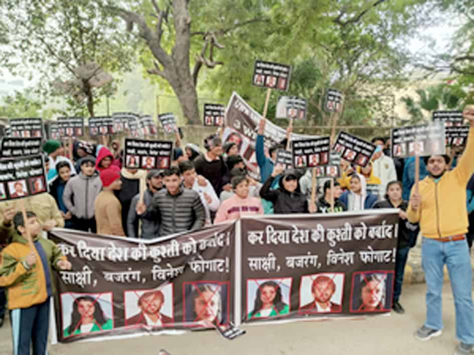 نئی دہلی۔ نوجوان ہندوستانی پہلوانوں نے چہارشنبہ کو یہاں جنتر منتر پر سینئر ریسلرس بجرنگ پونیا، ونیش پھوگٹ اور ساکشی ملک کے خلاف احتجاج کیا۔ مشتعل نے ریسلرس ہندوستان میں