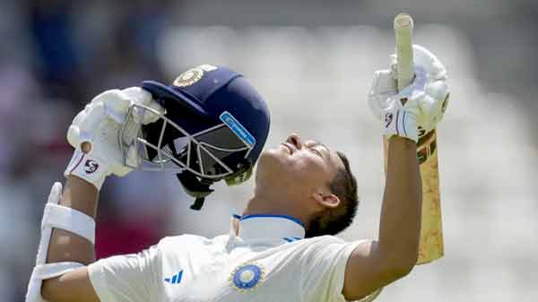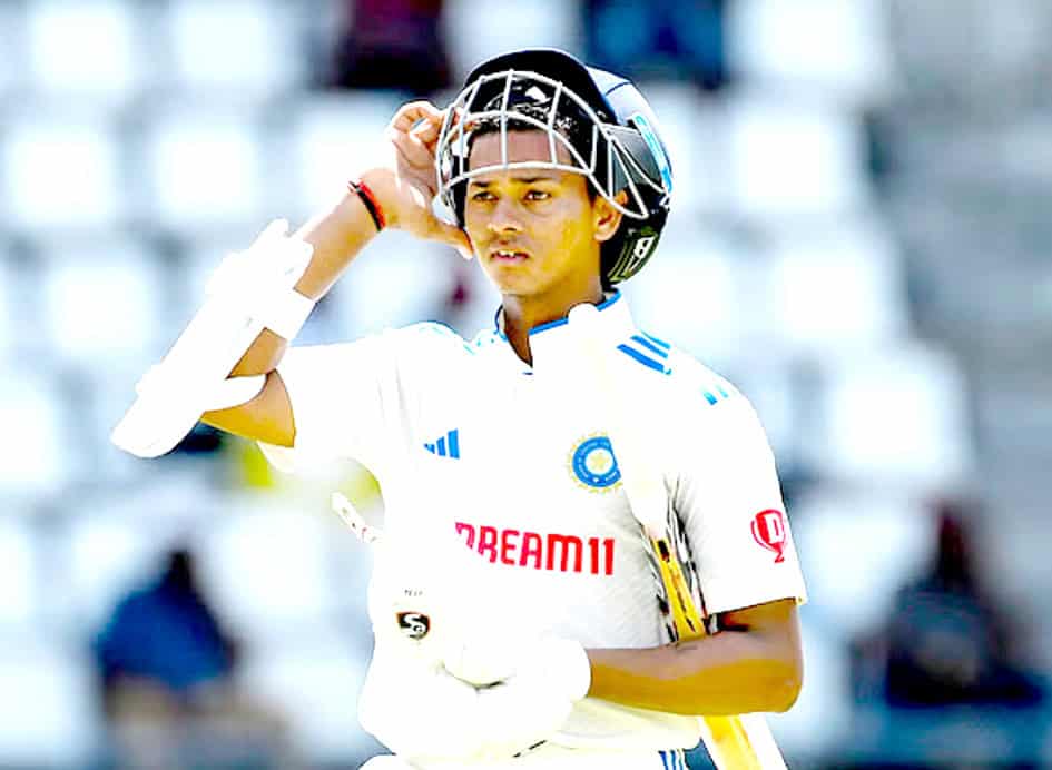 روسو (ڈومینیکا)۔ ہندوستان کے نوجوان بائیں ہاتھ کے اوپنر یاشاسوی جیسوال پہلے ٹسٹ کے دوسرے دن تین ہندسوں کے نشان تک پہنچنے کے بعد ٹسٹ ڈیبیو پر سنچری بنانے والے