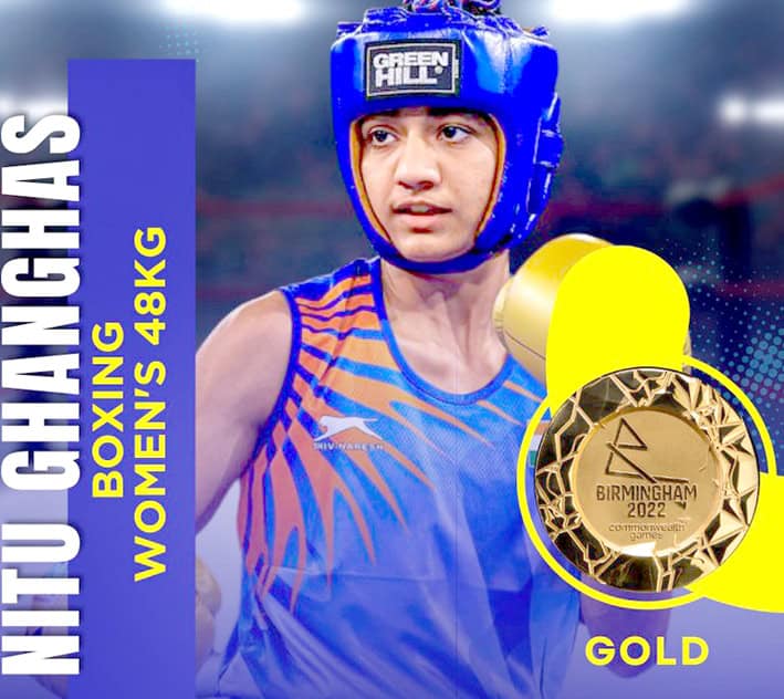 برمنگھم۔ ہندوستانی باکسر نیتو گھنگھاس، امیت پنگھل نے اتوار کو یہاں مختلف زمروں میں اپنے اپنے فائنل جیت کر 2022 کامن ویلتھ گیمز میں ملک کے لیے گولڈ میڈل جیتے۔امیت