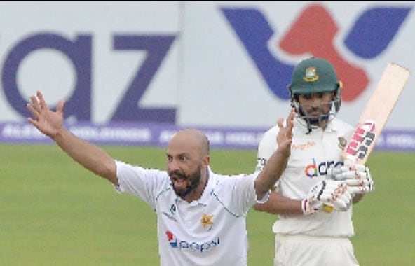 ڈھاکہ ۔پاکستان اور بنگلہ دیش کے درمیان ڈھاکہ میں کھیلے جانے والے میچ کے چوتھے روز کے اختتام پر بنگلہ دیش کی 76 رنز پر سات وکٹیں گرگئی ہیں۔ساجد خان