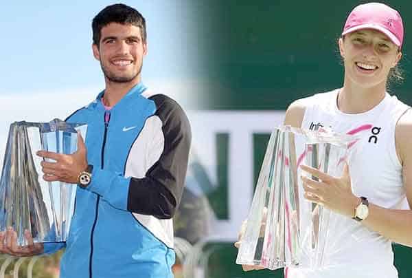 کیلیفورنیا۔ کارلوس الکاراز نے ڈینیل میدویدیف کو 7-6 (5) 6-1 سے شکست دے کر اپنی خطاب کا دفاع کیا، جب کہ ایگا سویٹیک نے پورے ٹورنمنٹ میں ایک بھی سیٹ