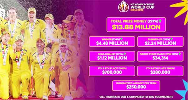 ویمنس ورلڈکپ کی انعامی رقم میں چار گنا اضافہ