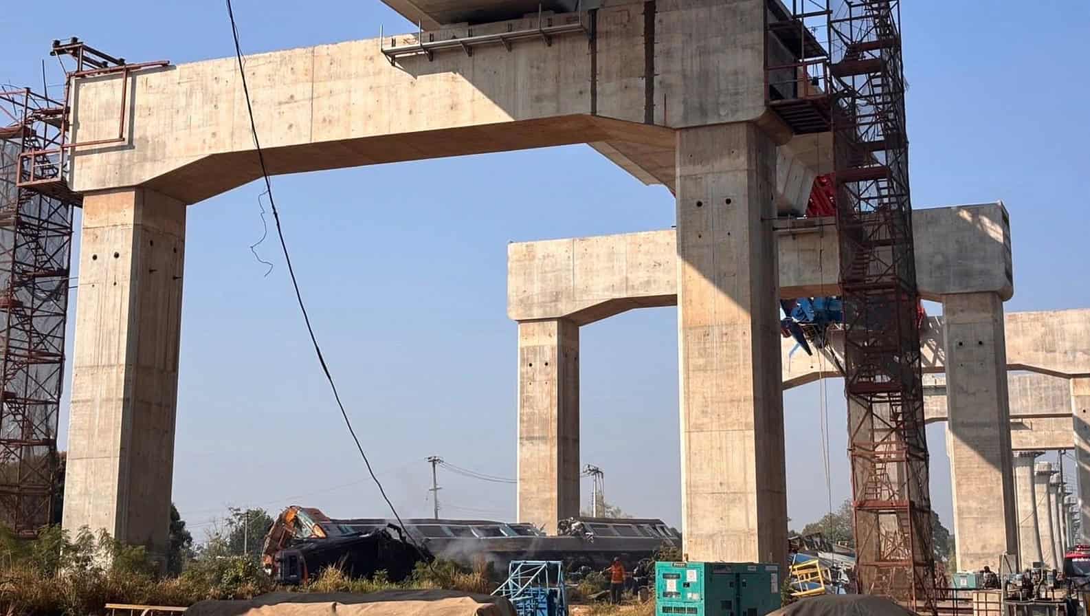 بنکاک 14.جنوری (ایجنسیز) تھائی لینڈ کے شمال مشرقی صوبے نخون رتچاسیما میں آج ایک دل دہلا دینے والا حادثہ پیش آیا، جہاں ایک زیر تعمیر ریلوے منصوبے کی تعمیر کے