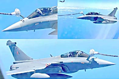 پیرس : فرانس سے رافیل طیاروں کی جو کھیپ ہندوستان کو روانہ کی گئی، ان طیاروں کی سطح سمندر سے 30,000 فیٹ بلندی پر فضاء میں ری فیولنگ کی گئی