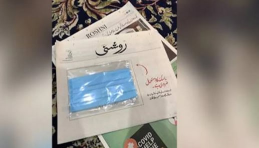 سری نگر: وادی کشمیر کے ایک 78 سالہ اردو روزنامے ’’روشنی‘‘ نے منگل کے شمارے کے صفحہ اول کے بالائی حصے پر فیس ماسک کو چسپاں کر کے اور نچلے