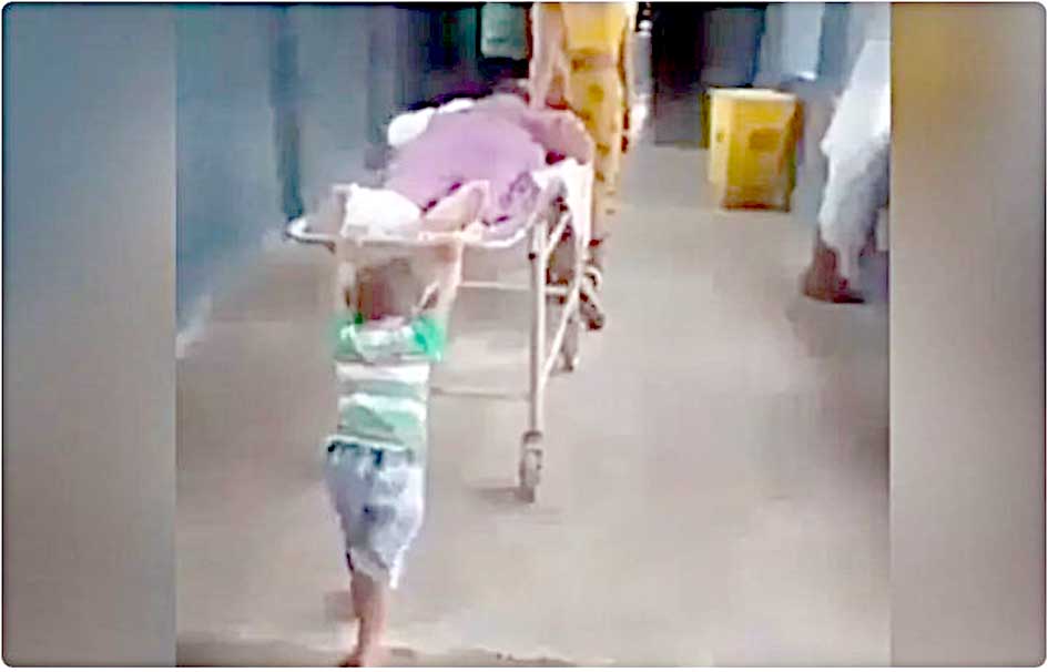 ٭ اتر پردیش کے دیوریا میں رشوت نہیں دینے پر معصوم بچے کو اسٹریچر کھینچنا پڑا تھا۔ اس واقعہ کا ویڈیو وائرل ہونے کے اسپتال کے وارڈ بوائے کو ہٹا