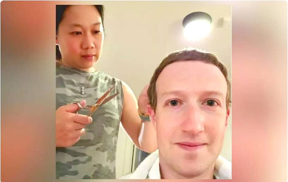 ٭ فیس بک کے چیف ایکزیکٹیو آفیسرمارک زوکربرگ نے اپنی ایک تصویر وائرل کی جس میں وہ اپنی اہلیہ پریزچیلا چین سے اپنے بال کٹوارہے ہیں ۔ سوشیل میڈیا پر