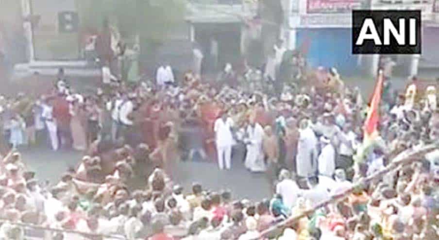 ساگر۔ کویڈ 19کی وباء کو پھیلنے سے روکنے کے لئے بنائے گئے گائیڈ لائنس کو پوری طرح نظر انداز کرتے ہوئے مدھیہ پردیش کے ضلع ساگر میں ایک پجاری اور