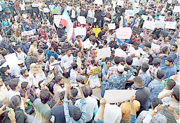 جامعہ میں طلبہ کے ساتھ بربریت کے خلاف بنگلورو میں طلبہ نے کیا احتجاج بنگلورو۔جامعہ ملیہ اسلامیہ اور اس کے اردگرد کے علاقوں میں شہریت ترمیمی ایکٹ کی مخالفت پر