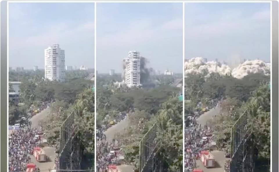 ٭ سوشیل میڈیا پر ایک ویڈیو وائرل ہوا جس میں دکھایا گیا کہ کیرالا کے کوچی کے مقام پر چند منٹوں میں دھماکہ کے ساتھ 19 منزلہ H20 ہولی فیتھ