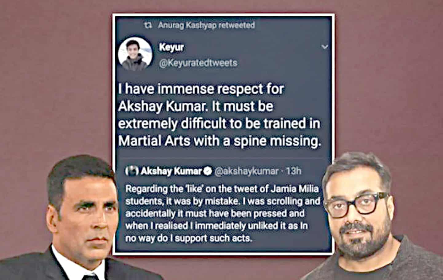 اکشے کمار ’کھوکھلا و کمزور‘ شخص، جامعہ والے ٹوئٹ پر ردعمل