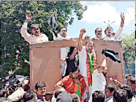 سکریٹریٹ کے سامنے دھرنا منظم کرنے کی کوشش ، بی جے پی قائدین گرفتار حیدرآباد ۔ 27 ۔ جون : ( سیاست نیوز) : نئے سکریٹریٹ کی بھاری خرچ پر